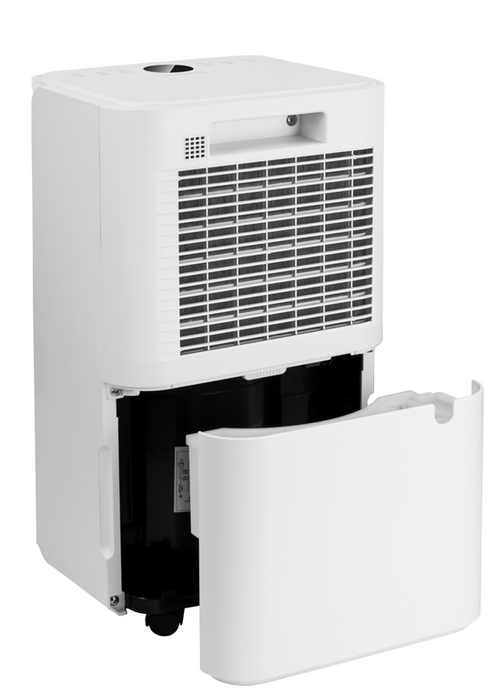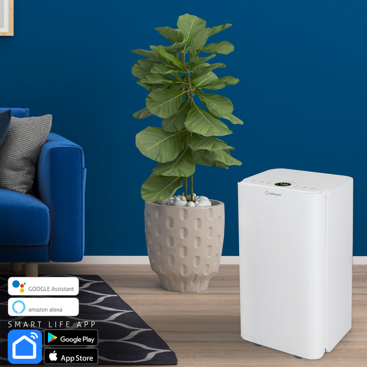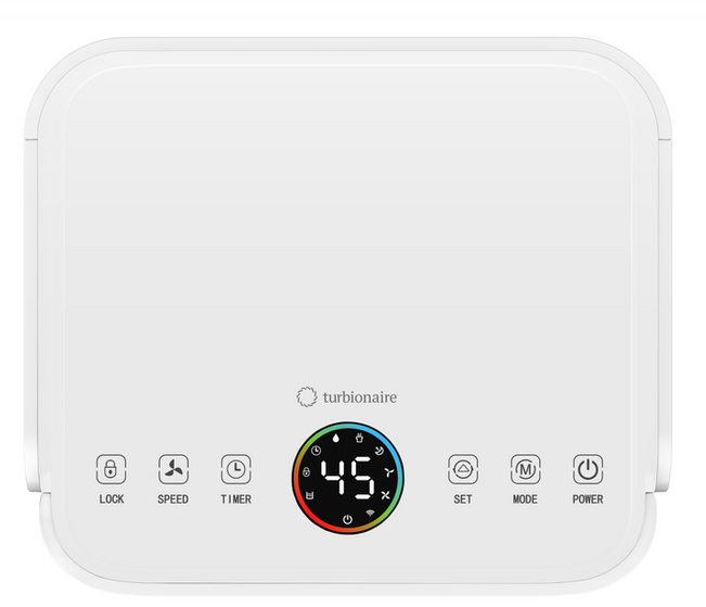 Turbionaire REVI 20 WIFI ION Luftentfeuchter ist energieeffizient und gewährleistet eine gesunde Luftfeuchtigkeit bei Ihnen zu Hause oder im Büro (Räume bis 100 m²). Der moderne und kompakte Luftentfeuchter mit übersichtlichem LED-Display und gebrauchsfreundlicher Bedienung auf der Oberseite entzieht der Luft 20 Liter Wasser pro Tag. Dieser Kondens-Lufttrockner ist mit einem WLAN (WiFi) ausgerüstet und kann mit der SMART Life-APP auch auf Abstand bedient werden - kompatibel mit Alexa & Google. Die Ionisierungsfunktion hilft Schadstoffe aus der Luft zu entfernen. Zu den weiteren Funktionen gehören ein AUTO-Modus, Schlafmodus, Kindersicherung und ein LED-Feuchtigkeits-Indikator, der an der Vorderseite des Gerätes ein einfaches Ablesen ermöglicht. Er wechselt die Farbe entsprechend der Luftfeuchtigkeit im Raum: Blau / Grün / Rot. Turbionaire REVI 20 WIFI ION Kondensationsentfeuchter ist geräuscharm, einfach zu transportieren und arbeitet mit dem umweltfreundlichen Kältemittel R290.