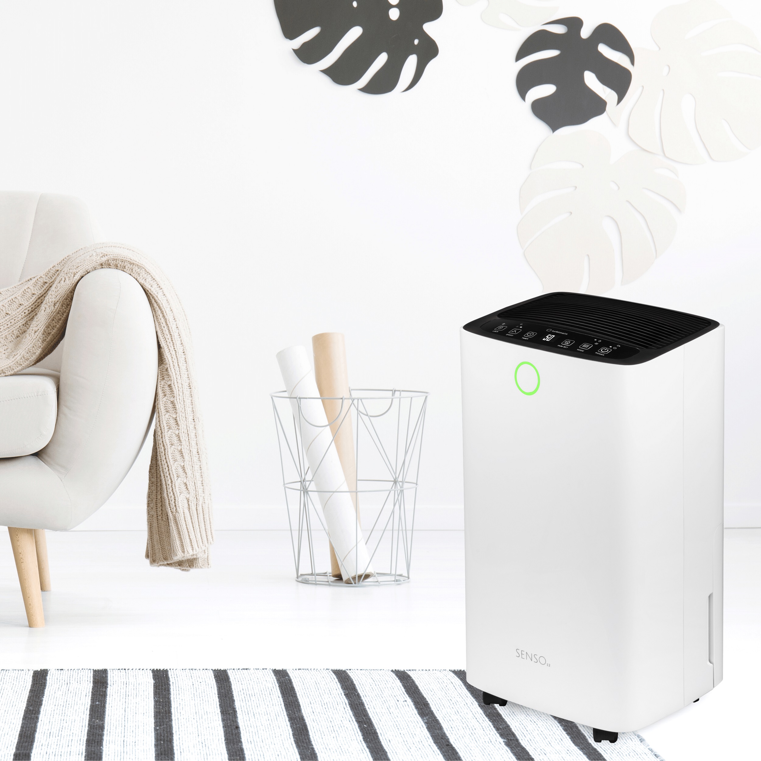 Turbionaire SENSO 12 Luftentfeuchter sorgt rasch und effektiv für eine gesunde Luftfeuchtigkeit bei Ihnen daheim oder im Büro (Räume bis 50 m²). Der moderne und kompakte Luftentfeuchter mit übersichtlichem LED-Display und gebrauchsfreundlicher Bedienung an der Oberseite entzieht der Luft 12 Liter Wasser pro Tag.