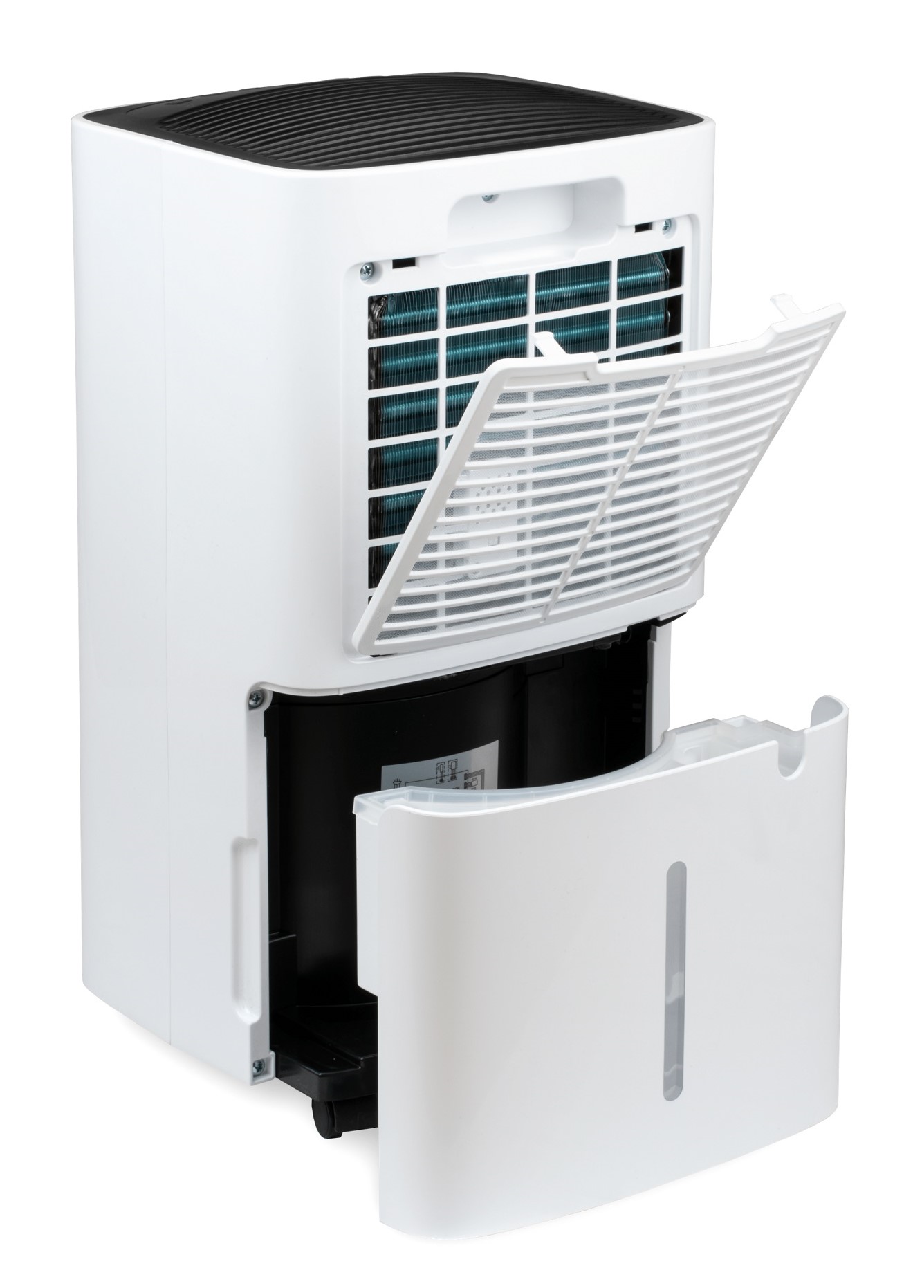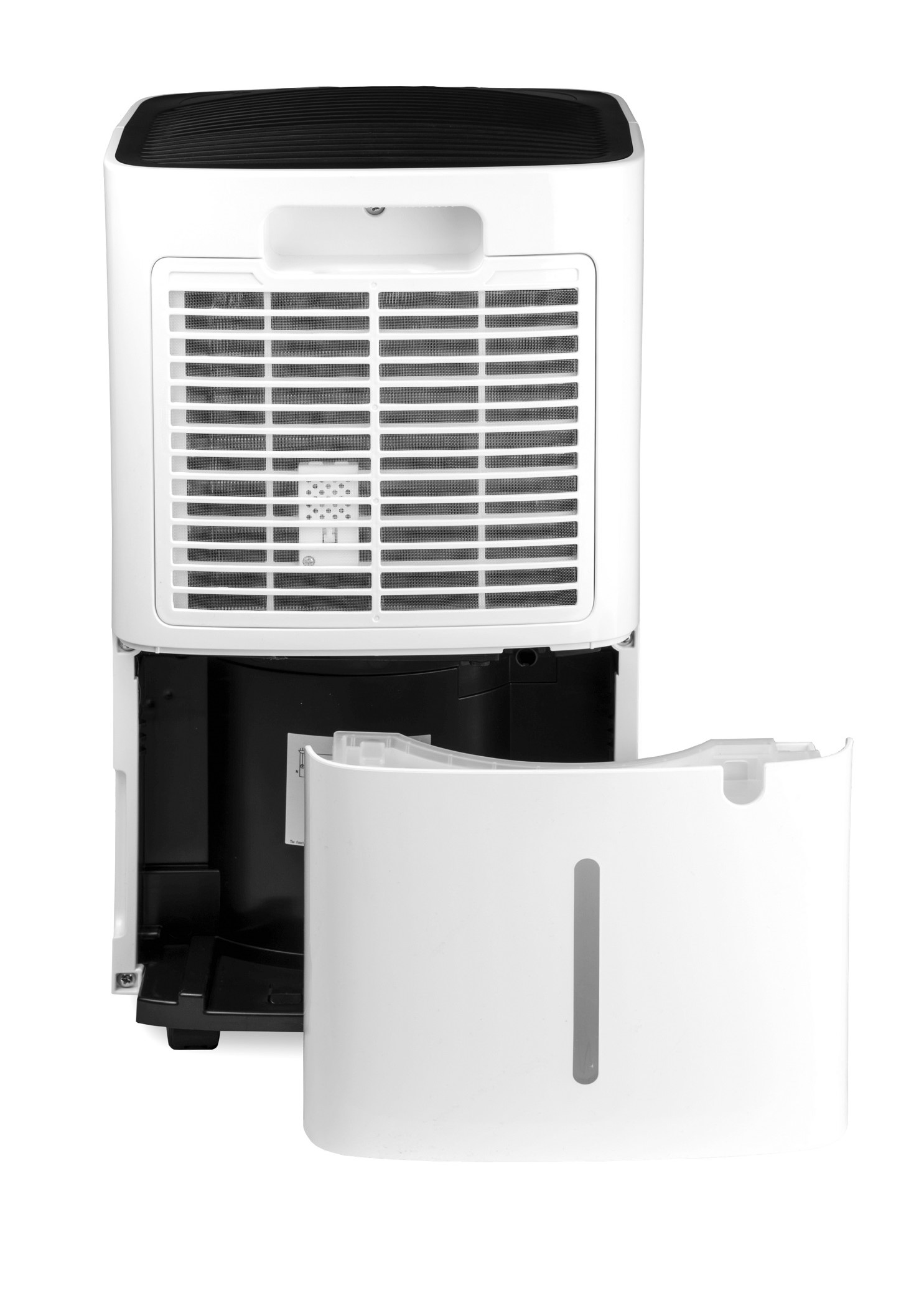 Ein kompakter und geräuscharmer Kondensations-Entfeuchter der schnell und effizient bis zu 12 Liter Wasser pro Tag aus Räumen bis 50 m² entfernt. Das intuitive digitale Bedienungspanel an der Oberseite des Gerätes ermöglicht eine einfach Steuerung und die „Kindersicherung“ schützt vor versehentlichen Änderungen.