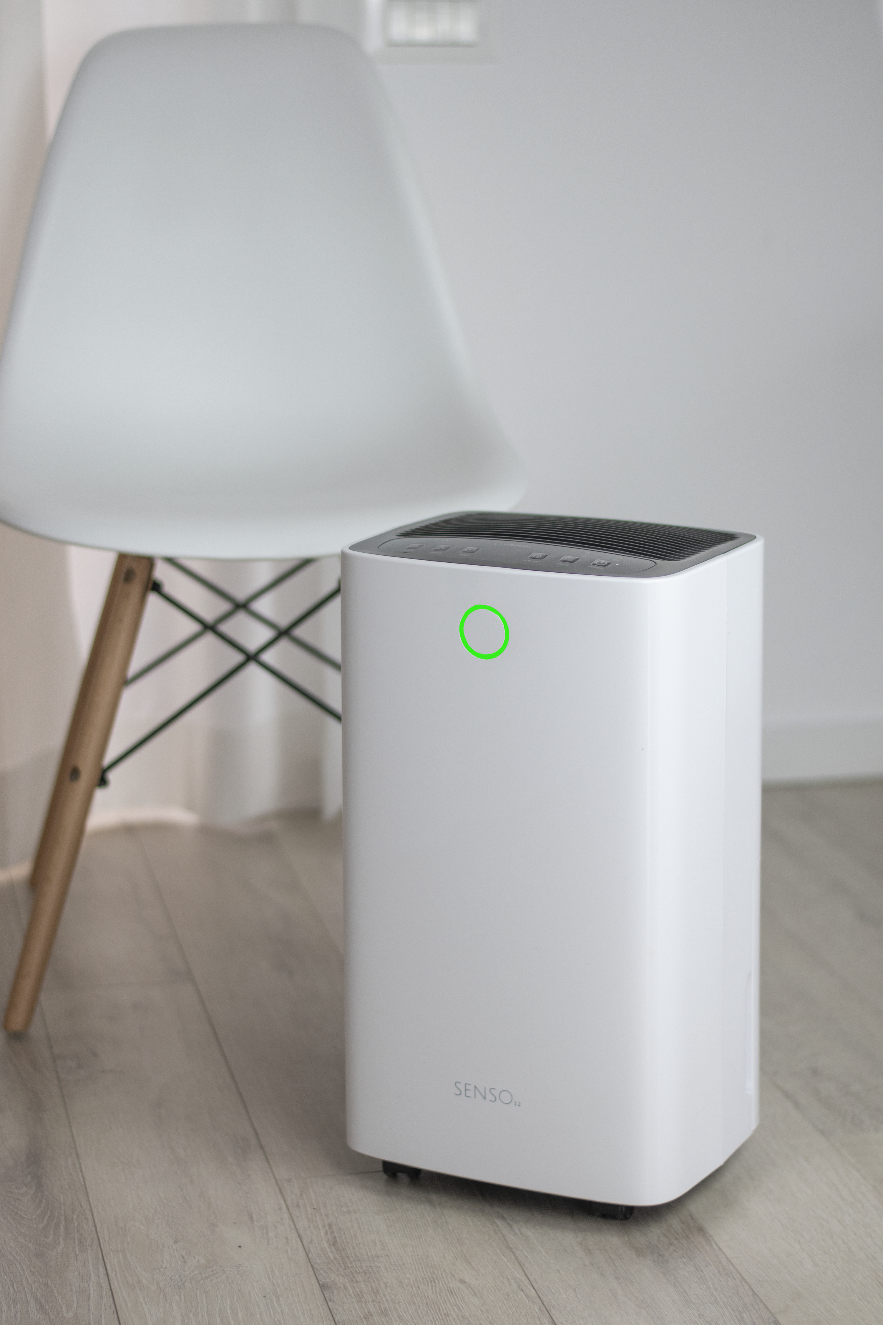 Mit dem Luftentfeuchter Turbionaire SENSO 12 können Sie dank der kreisförmigen LED-Feuchtigkeitsanzeige an der Vorderseite des Geräts auf einen Blick erkennen, ob die Luftfeuchtigkeit im Raum im gesunden Bereich liegt. Die Farbe ändert sich je nach Luftfeuchtigkeit im Raum:
