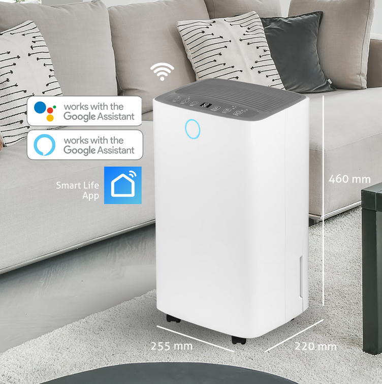 Turbionaire SENSO 13 WiFi Luftentfeuchter sorgt rasch und effektiv für eine gesunde Luftfeuchtigkeit mit einer Entfeuchtungskapazität von 13 Liter pro Tag in Räumen bis 65 m². Der moderne und kompakte Luftentfeuchter mit WLAN-Verbindung (WiFi) kann einfach über die Smart Life-App, verfügbar in Google Play und im App-Store, ferngesteuert werden. Selbstverständlich, auch kompatibel mit den Sprachassistenten von Amazon und Google. Zu den weiteren Funktionen gehören ein AUTO-Modus, Schlafmodus, Kindersicherung und ein LED-Feuchtigkeits-Indikator, der an der Vorderseite des Gerätes ein einfaches Ablesen ermöglicht. Er wechselt die Farbe entsprechend der Luftfeuchtigkeit im Raum: Blau: unter 45 % Grün: zwischen 45 und 65 % Rot: über 65 % Turbionaire SENSO 13 WiFi Kondensationsentfeuchter ist geräuscharm, einfach zu transportieren und arbeitet mit dem umweltfreundlichen Kältemittel R290. Das Gerät kann mit dem optionalen Turbionaire T-Clean Dual Filter (TCFS12) ausgestattet und auch als Luftreiniger verwendet werden.